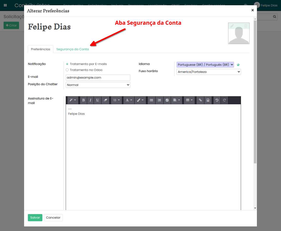 Acessando aba Segurança da Conta:
